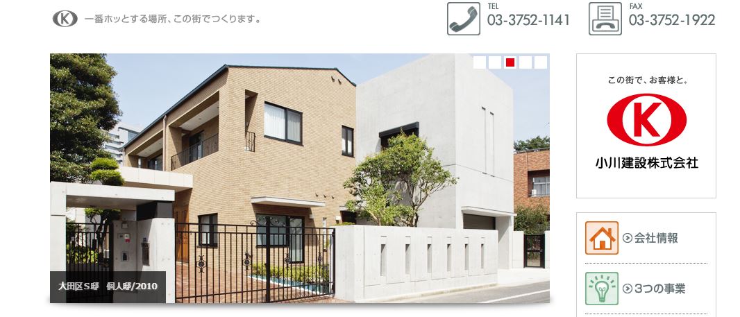 小川建設株式会社さんは、大田区久が原で創業から60年以上建設工事を営む老舗業者さんです。小川建設さんは、「集合住宅、商業ビル建設」「戸建て建設」「リノベーション」の3つの事業を柱にしており、特にRC工法と呼ばれる鉄筋コンクリート造の戸建て建設に力を入れています。RC工法で建設された一般住宅は、他の構造に比べても頑丈性や耐火性、耐久性に優れます。